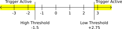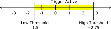 The trigger can also be reversed by swapping the low and high thresholds, i.e. if the high threshold is below the low threshold: