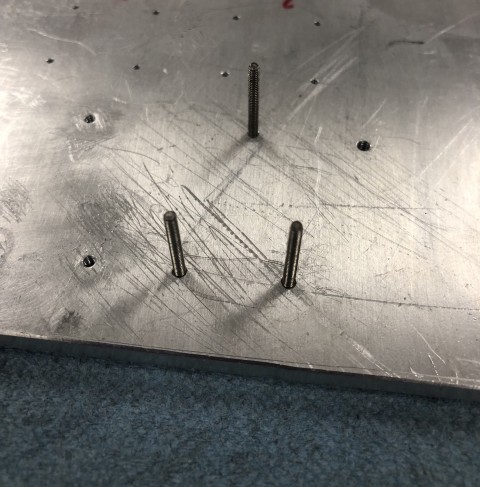 If you’d like to align the CV7 with the mounting hole, you can use some threaded rod (e.g. 18-8 Stainless Steel Threaded Rod, 2-56 Thread Size, 1" Long from McMaster-Carr) as shown.